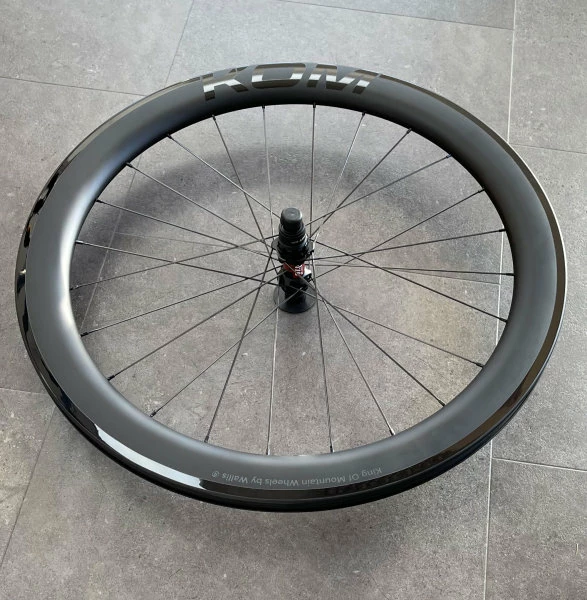 - Wallis King of Mountain Carbon Aero Felge, die Felgen haben ein asymetrisches Profil um die Speichenspannung zwischen Antriebsseite und Nicht-Antriebsseite optimal auszugleichen.