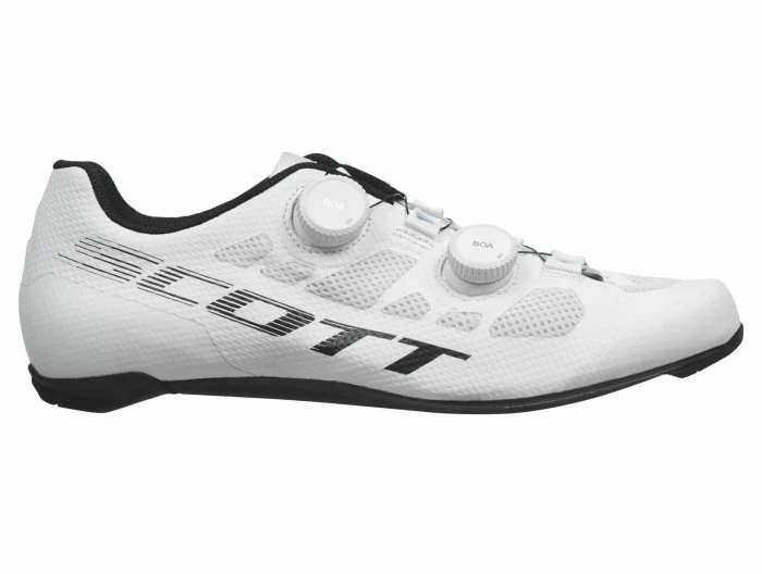 SCOTT hat zusammen mit Wissenschaftlern über mehrere Jahre an der Entwicklung eines Konzepts gearbeitet, bei dem die Außensohle für ein Verschmelzen von Komfort und Effizienz sorgt. PowerZone und Axial Flex reduzieren die Belastung auf Knie und Fußgelenk, sorgen so für ein optimales Fahrgefühl und vermeiden Ermüdungserscheinungen. Die steife Carbon-Außensohle mit einem Steifigkeitsindex von 10. Lineares High-Modulus-Carbon in einem spezifischen10-Ply-Layup optimiert die Steifigkeit der Sohle von der Pedalplatte bis zur Ferse und reduziert das Gewicht, wobei dennoch ein Torsionsflex von Fußgewölbe bis zur Ferse erhalten bleibt. Mit dem neuen Einstellsystem wird das präzise Anbringen uns Positionieren der Pedalplatte erleichtert.